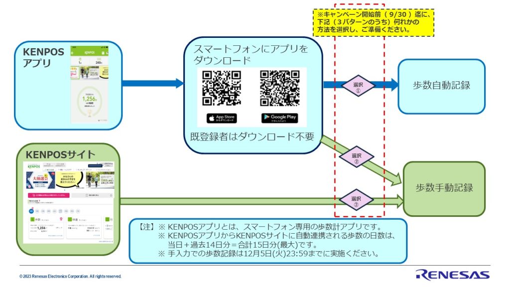 ※参加エントリー及びウォーキング期間中の歩数登録(管理)は、健康支援ツール「KENPOS」で